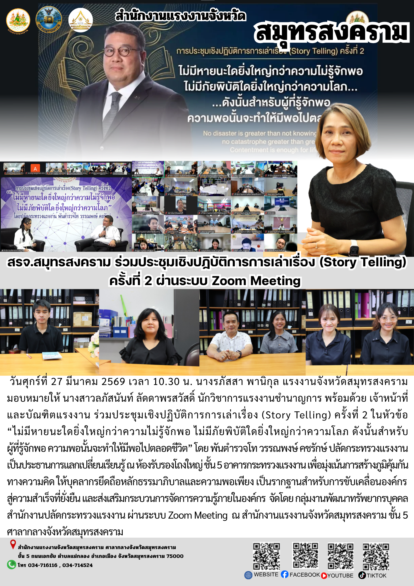 สรจ.สมุทรสงคราม ร่วมประชุมเชิงปฏิบัติการการเล่าเรื่อง (Story Telling) ครั้งที่ 2 ผ่านระบบ Zoom Meeting