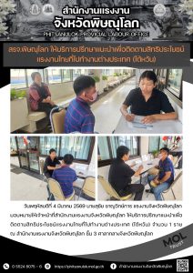 สรจ.พิษณุโลก ให้บริการปรึกษาเเนะนำเพื่อติดตามสิทธิประโยชน์เเรงงานไทยที่ไปทำงานต่างประเทศ (ไต้หวัน)