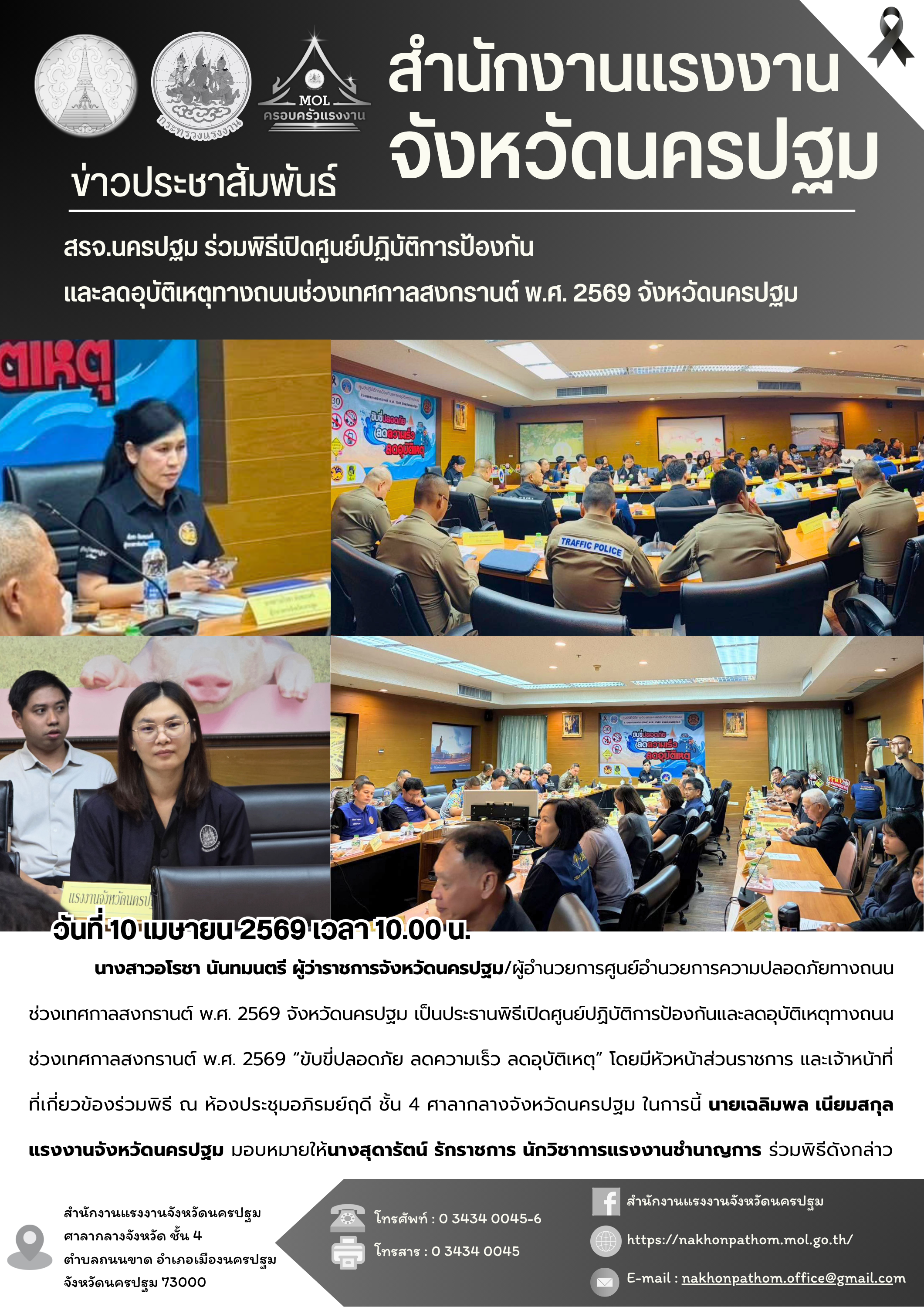 สรจ.นครปฐม ร่วมพิธีเปิดศูนย์ปฏิบัติการป้องกันและลดอุบัติเหตุทางถนนช่วงเทศกาลสงกรานต์ พ.ศ. 2569 จังหวัดนครปฐม