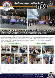 สรจ.ตรัง ลงพื้นที่ตรวจบูรณาการสถานประกอบการกลุ่มเสี่ยงการป้องกันและแก้ไขปัญหาการค้ามนุษย์ด้านแรงงาน จังหวัดตรัง ประจำปีงบประมาณ พ.ศ. 2569