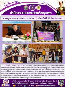 แรงงานจังหวัดชุมพร พร้อมด้วยคณะทำงานเฉพาะกิจป้องกันการค้ามนุษย์ด้านแรงงาน ร่วมการตรวจบรูณาการ สถานประกอบการกลุ่มเสี่ยงในพื้นที่ จังหวัดชุมพร