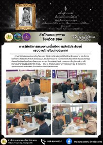 สำนักงานแรงงานจังหวัดระยอง ให้บริการเกี่ยวกับการให้คำปรึกษาด้านแรงงาน รวมถึงการรับคำร้อง เพื่อติดตามสิทธิประโยชน์แรงงานไทยในต่างประเทศ