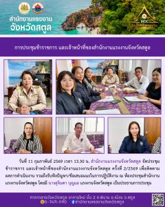 แรงงานสตูล จัดประชุมข้าราชการ และเจ้าหน้าที่ของสำนักงานแรงงานจังหวัดสตูล ครั้งที่ 2/2569