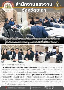 แรงงานจังหวัดยะลา เข้าร่วมประชุมด่วนหารือการเยียวยา ผู้ได้รับผลกระทบจากเหตุวางเพลิงในพื้นที่จังหวัดยะลา