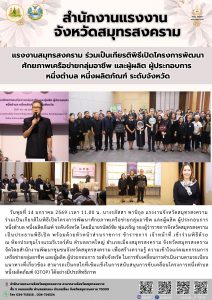 แรงงานสมุทรสงคราม ร่วมเป็นเกียรติพิธีเปิดโครงการพัฒนาศักยภาพเครือข่ายกลุ่มอาชีพ และผู้ผลิต ผู้ประกอบการ หนึ่งตำบล หนึ่งผลิตภัณฑ์ ระดับจังหวัด