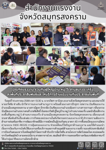 บัณฑิตแรงงาน ร่วมกับผู้ใหญ่บ้าน หมู่ 5 ตำบลบางจะเกร็ง ลงพื้นที่ประชาสัมพันธ์และให้บริการด้านแรงงานกับประชาชนในพื้นที่