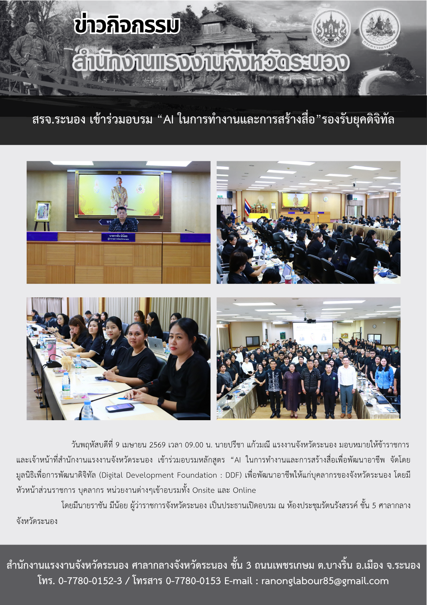 สรจ.ระนอง เข้าร่วมอบรม “AI ในการทำงานและการสร้างสื่อ”รองรับยุคดิจิทัล