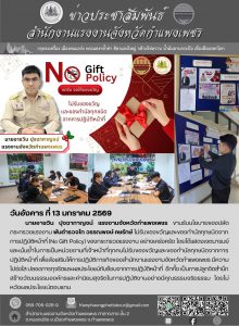 สำนักงานแรงงานจังหวัดกำแพงเพชร ขานรับนโยบายไม่รับของขวัญและของกำนัลทุกชนิดจากการปฏิบัติหน้าที่ (No Gift Policy) ตามนโยบายของกระทรวงแรงงาน