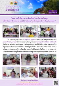 สรจ.สตูล จัดโครงการแก้ไขปัญหาความเดือดร้อนด้านอาชีพ จังหวัดสตูล ครั้งที่ 2 ประจำปีงบประมาณ พ.ศ.2567 หลักสูตร “การจักสานประเป๋าจากเส้นนาโนยางพารา”