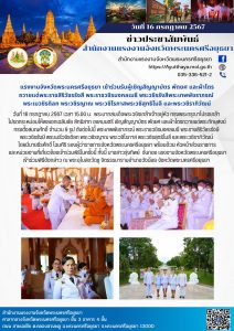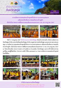 สรจ.สตูล ร่วมเป็นเจ้าภาพถวายภัตตาหารเพลแด่พระภิกษุสงฆ์ในโครงการบรรพชาอุปสมบท เฉลิมพระเกียรติพระบาทสมเด็จพระเจ้าอยู่หัว เนื่องในโอกาสพระราชพิธีมหามงคลเฉลิมพระชนมพรรษา 6 รอบ 28 กรกฎาคม 2567