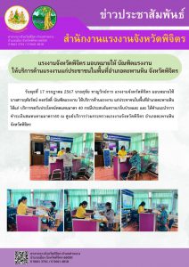 แรงงานจังหวัดพิจิตร มอบหมายให้บัณฑิตแรงงาน ให้บริการด้านแรงงานแก่ประชาชนในพื้นที่อำเภอตะพานหิน จังหวัดพิจิตร