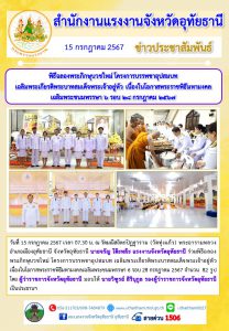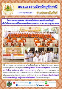 สรจ.อุทัยธานี โครงการบรรพชาอุปสมบท เฉลิมพระเกียรติพระบาทสมเด็จพระเจ้าอยู่หัว เนื่องในโอกาสพระราชพิธีมหามงคลเฉลิมพระชนมพรรษา 6 รอบ 28 กรกฎาคม 2567
