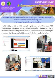 แรงงานจังหวัดพิจิตร มอบหมายเจ้าหน้าที่เข้าร่วมประชุมเชิงปฏิบัติการขับเคลื่อน “จังหวัดคุณธรรม” กิจกรรมสัมมนาพัฒนาและขับเคลื่อนจังหวัดคุณธรรม ผ่าน Facebool Live สำนักงานผู้ตรวจการแผ่นดิน
