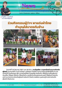 สรจ.สุรินทร์ ร่วมกิจกรรมผู้ว่าฯ พาแต่งผ้าไทย ทำบุญใส่บาตรกับช้าง