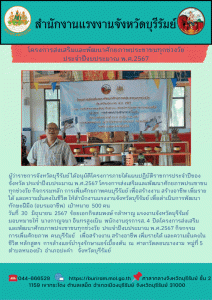 สำนักงานแรงงานจังหวัดบุรีรัมย์ ปิดโครงการส่งเสริมและพัฒนาศักยภาพประชาชนทุกช่วงวัย ประจำปีงบประมาณ พ.ศ.2567