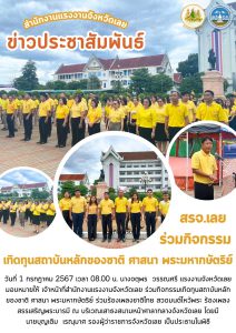 แรงงานจังหวัดพิจิตร มอบหมายเจ้าหน้าที่ ร่วมพิธีเจริญพระพุทธมนต์เฉลิมพระเกียรติ ถวายพระพรชัยมงคลพระบาทสมเด็จพระเจ้าอยู่หัว เนื่องในโอกาสมหามงคลเฉลิมพระชนมพรรษา 6 รอบ 28 กรกฎาคม 2567