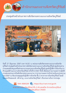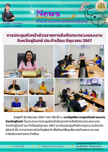 การประชุมหัวหน้าส่วนราชการสังกัดกระทรวงแรงงานจังหวัดสุรินทร์ ประจำเดือน มิถุนายน 2567