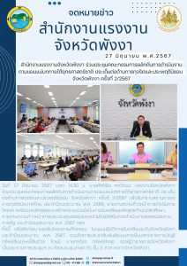 สำนักงานแรงงานจังหวัดพังงา ร่วมประชุมคณะกรรมการผลักดันการดำเนินงาน ตามแผนแม่บทภายใต้ยุทธศาสตร์ชาติ ประเด็นต่อต้านการทุจริตและประพฤติมิชอบ จังหวัดพังงา ครั้งที่ 2/2567