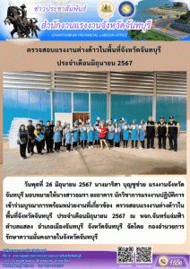 นางมาริสา บุญชูช่วย แรงงานจังหวัดจันทบุรี มอบหมายให้นางสาวอมรา ยะถาคาร นักวิชาการแรงงานปฏิบัติการ เข้าร่วมบูรณาการพร้อมหน่วยงานที่เกี่ยวข้อง ตรวจสอบแรงงานต่างด้าวในพื้นที่จังหวัดจันทบุรี ประจำเดือนมิถุนายน 2567