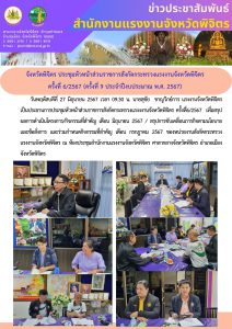 จังหวัดพิจิตร ประชุมหัวหน้าส่วนราชการสังกัดกระทรวงแรงงานจังหวัดพิจิตร ครั้งที่ 6/2567 (ครั้งที่ 9 ประจำปีงบประมาณ พ.ศ. 2567)