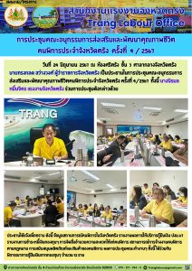 แรงงานจังหวัดตรัง ร่วมการประชุมคณะอนุกรรมการส่งเสริมและพัฒนาคุณภาพชีวิตคนพิการประจำจังหวัดตรัง ครั้งที่ 4/2567