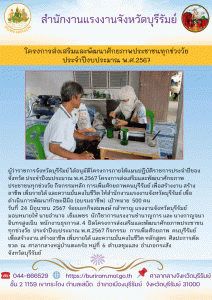 สำนักงานแรงงานจังหวัดบุรีรัมย์ ปิดโครงการส่งเสริมและพัฒนาศักยภาพประชาชนทุกช่วงวัย ประจำปีงบประมาณ พ.ศ.2567