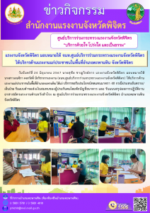 จนท.ศูนย์บริการร่วมกระทรวงแรงงานจังหวัดพิจิตร ให้บริการด้านแรงงานแก่ประชาชนในพื้นที่