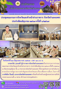 ประชุมคณะกรมการจังหวัดและหัวหน้าส่วนราชการ จังหวัดกำแพงเพชร ประจำเดือนมิถุนายน 2567 ครั้งที่ 6/2567