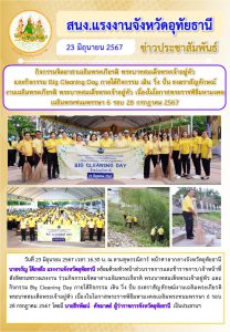 สนง.แรงงานจังหวัดอุทัยธานี กิจกรรมจิตอาสาเฉลิมพระเกียรติ พระบาทสมเด็จพระเจ้าอยู่หัว และกิจกรรม Big Cleaning Day ภายใต้กิจกรรม เดิน วิ่ง ปั่น ธงตราสัญลักษณ์ งานเฉลิมพระเกียรติ พระบาทสมเด็จพระเจ้าอยู่หัว เนื่องในโอกาสพระราชพิธีมหามงคลเฉลิมพระชนมพรรษา 6 รอบ 28 กรกฎาคม 2567