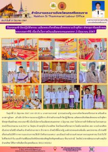 วันศุกร์ที่ 21 มิถุนายน 2567 เวลา 09.30 น. นางสาวนราภรณ์ สุวรรณประเสริฐ แรงงานจังหวัดนครศรีธรรมราช พร้อมด้วยนางสาวฐรินดา แก้วเพ็ง นักวิชาการแรงงานปฏิบัติการ เข้าร่วมกิจกรรมเข้าวัดปฏิบัติธรรม เฉลิมพระเกียรติสมเด็จพระนางเจ้าสุทิดา พัชรสุธาพิมลลักษณ พระบรมราชีนิ เนื่องในโอกาสวันเฉลิมพระชนมพรรษา 3 มิถุนายน 2567 ในโครงการเข้าวัดฟังธรรมวันธรรมสวนะ ประจำปีงบประมาณ พ.ศ.2567 ณ วัดสุชน ตำบลทุ่งใส อำเภอสิชล จังหวัดนครศรีธรรมราช