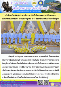 นางมาริสา บุญชูช่วย แรงงานจังหวัดจันทบุรี เข้าร่วมการบันทึกเทปโทรทัศน์กล่าวอาเศียรวาท เนื่องในโอกาสพระราชพิธีมหามงคลเฉลิมพระชนมพรรษา 6 รอบ 28 กรกฎาคม 2567 ของพระบาทสมเด็จพระเจ้าอยู่หัว