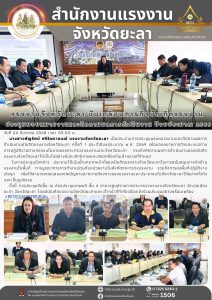 สำนักงานแรงงานจังหวัดยะลา เข้าร่วมประชุมคณะกรรมการอำนวยการรักษาความมั่นคงภายในจังหวัดยะลา