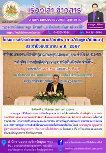 แรงงานจังหวัดมุกดาหาร ร่วมเป็นเกียรติในพิธีเปิดโครงการสร้างทักษะแรงงาน/วิชาชีพ (ลาว/กัมพูชา/เมียนมา) ประจำปีงบประมาณ พ.ศ. 2567