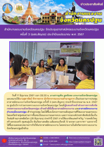 สรจ.นครปฐม จัดประชุมอาสาสมัครแรงงานจังหวัดนครปฐม ครั้งที่ 3 (อสร.สัญจร) ประจำปีงบประมาณ พ.ศ. 2567 (โซนอำเภอเมืองนครปฐม)