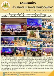 สำนักงานเเรงงานจังหวัดพังงา ร่วมงานเเถลงข่าวการจัดกิจกรรม ภายใต้โครงการส่งเสริมและพัฒนาศักยภาพการตลาดสินค้าอัตลักษณ์จังหวัดพังงา
