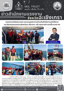 ออกตรวจเรือประมงทะเลแบบบูรณาการร่วมกับสำนักงานสวัสดิการและคุ้มครองแรงงานจังหวัดฉะเชิงเทรา บริเวณปากอ่าวแม่น้ำบางปะกง