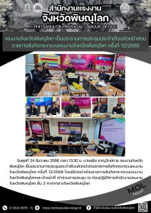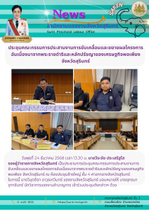 แรงงานจังหวัดพิษณุโลก เป็นประธานการประชุมประจำเดือนหัวหน้าส่วนราชการสังกัดกระทรวงแรงงานจังหวัดพิษณุโลก ครั้งที่ 12/2568
