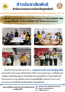 สรจ.อุตรดิตถ์ ลงพื้นที่รณรงค์ ส่งเสริมความเข้มแข็งของชมรม TO BE NUMBER ONE และศูนย์เพื่อนใจ TO BE NUMBER ONE ในสถานประกอบการ