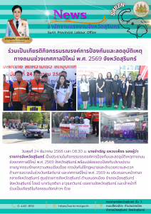 แรงงานจังหวัดสุรินทร์ ร่วมเป็นเกียรติกิจกรรมรณรงค์การป้องกันและลดอุบัติเหตุทางถนนช่วงเทศกาลปีใหม่ พ.ศ. 2569 จังหวัดสุรินทร์