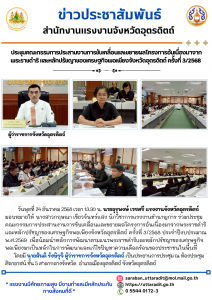 สรจ.อุตรดิตถ์ ร่วมประชุมคณะกรรมการประสานงานการขับเคลื่อนและขยายผลโครงการอันเนื่องมาจากพระราชดำริ และหลักปรัชญาของเศรษฐกิจพอเพียงจังหวัดอุตรดิตถ์ ครั้งที่ 3/2568