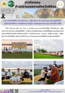 แรงงานจังหวัดพิจิตร เข้าร่วมกิจกรรม “ปูเสื่อ นั่งสาด ตักบาตรรับอรุณ เสริมบุญที่บึงสีไฟ” เฉลิมพระเกียรติพระบาทสมเด็จพระเจ้าอยู่หัว ส่งเสริมคุณธรรมควบคู่การท่องเที่ยวบึงสีไฟ