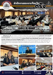 แรงงานจังหวัดพิษณุโลก เป็นประธานการประชุมเตรียมความพร้อมและ ออกตรวจสถานประกอบการเพื่อป้องกันการบังคับใช้แรงงานหรือบริการเเละการค้ามนุษย์ด้านเเรงงาน ณ พื้นที่อำเภอเมืองพิษณุโลก