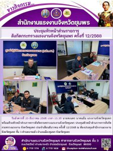 แรงงานจังหวัดชุมพร เป็นประธานการประชุมหัวหน้าส่วนราชการ สังกัดกระทรวงแรงงานจังหวัดชุมพร ครั้งที่ 12/2568