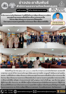 สำนักงานแรงงานจังหวัดสกลนคร ร่วมพิธีเปิดโครงการพัฒนาทักษะแรงงานอิสระและกลุ่มเป้าหมายเฉพาะเพื่อเพิ่มโอกาสในการประกอบอาชีพ กิจกรรม พัฒนาทักษะแรงงานนอกระบบให้ลอดคล้อง กับความสามารถเฉพาะบุคคลเพื่อการประกอบอาชีพการฝึกยกระดับฝีมือ