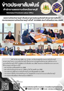 แรงงานจังหวัดราชบุรี – เป็นประธานการประชุมหัวหน้าส่วนราชการสังกัด กระทรวงแรงงานจังหวัดราชบุรี ครั้งที่ 12/2568 ประจำเดือนธันวาคม 2568