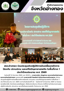 สรจ.อ่างทอง ร่วมประชุมเชิงปฏิบัติการขับเคลื่อนกลไกการ ป้องกัน ปราบปราม และแก้ไขปัญหายาเสพติด ในพื้นที่ภาค 1 ประจำปีงบประมาณ พ.ศ. 2569