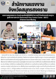 แรงงานสมุทรสงคราม ร่วมประชุมเชิงปฏิบัติเพื่อทำความเข้าใจหลักเกณฑ์มาตรฐานศูนย์ราชการสะดวก (Government Easy Contact Center : GECC) ผ่านระบบ Zoom Meeting